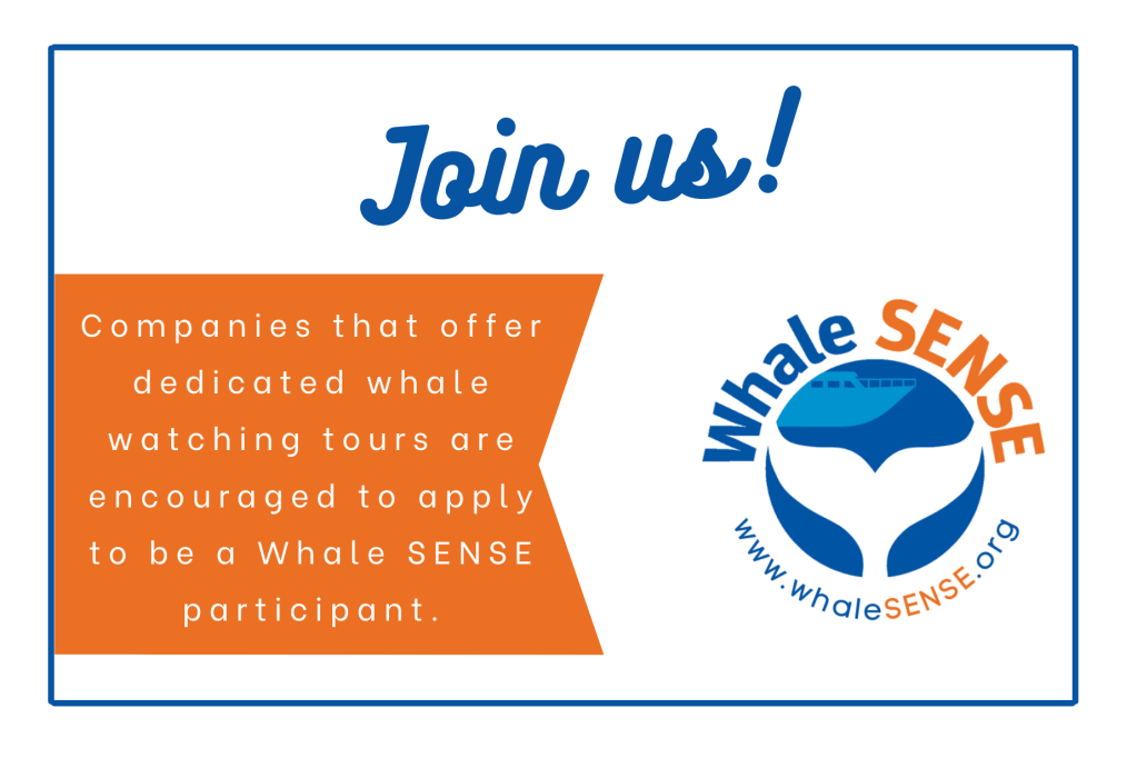 Whale SENSE is a voluntary education and recognition program offered to commercial whale watching companies in the U.S. Atlantic and Alaska Regions. Developed in collaboration with the whale watching industry, Whale SENSE recognizes whale watching companies committed to reasonable practices.